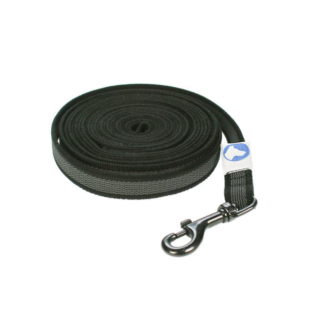 Das speziell für uns gewebte schwarze Nylonmaterial verfügt über einen höheren Baumwollanteil als bei vielen anderen Anbietern. Dadurch sind die Leinen besonders weich aber dennoch griffig, auch bei feuchter Witterung.