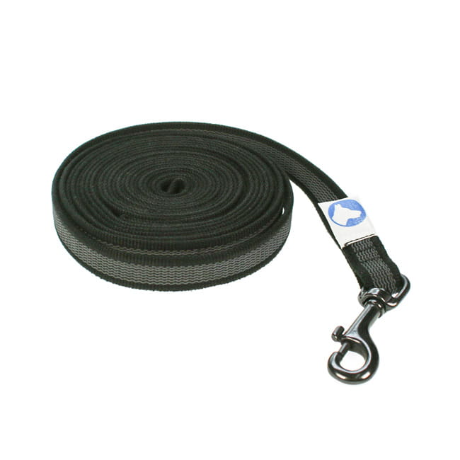 Das speziell für uns gewebte schwarze Nylonmaterial verfügt über einen höheren Baumwollanteil als bei vielen anderen Anbietern. Dadurch sind die Leinen besonders weich aber dennoch griffig, auch bei feuchter Witterung.