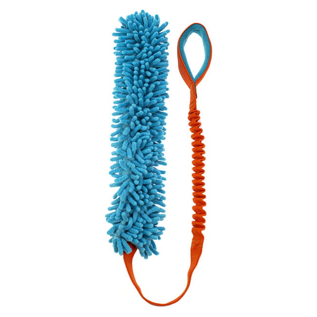 Der Wischmopp für den Hund! Bestätigungsspielzeug bestehend aus einem am Bungee-Seil befestigten, extra langen Mopp. Durch die gepolsterte Handschlaufe ist es für den Hundeführer während des Zerrspiels angenehm zu halten. Das sich ausdehnende Bungee-Seil schont sowohl den Nacken des Hundes als auch die Schulter des Hundeführers.