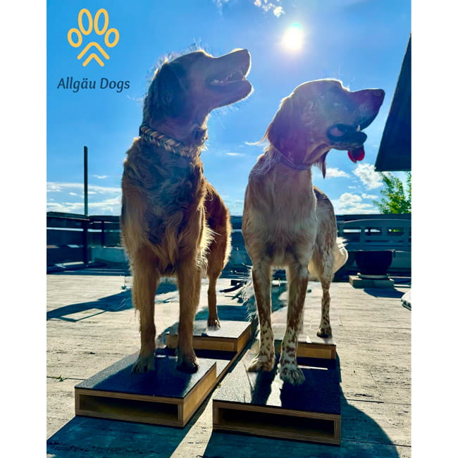 Alle Fitness-Plattformen von Allgäu Dogs sind mit Leinölfirnis behandelt und dadurch auch für den Outdoor-Einsatz geeignet. Die beidseitig rutschfeste Gummibeschichtung sorgt für maximalen Halt auf jedem Untergrund – ideal für sicheres Hundetraining, egal ob drinnen oder draußen.
