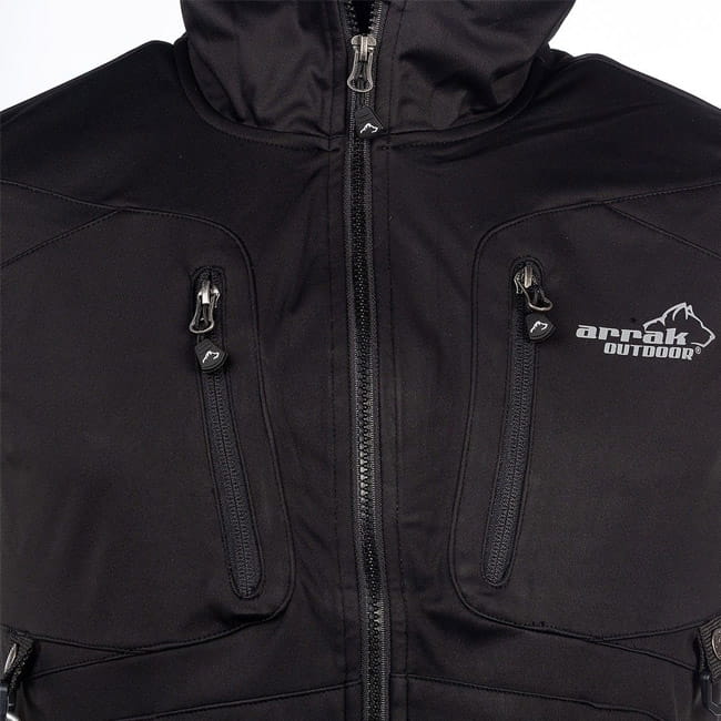 Die Softshellweste Acadia von Arrak ist ein funktionale und elegante Weste aus angenehmem Softshellmaterial. Die Weste hat sechs Vordertaschen, davon vier mit Reißverschluss, sowie eine große Rückentasche ohne Reißverschluss.
