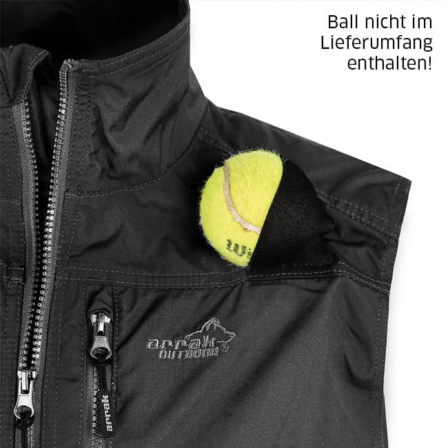 Die Weste ist grundimprägniert, kann aber mehrmals nach imprägniert werden, um besser gegen Nässe zu schützen. Belüftungsreißverschlüsse an den Seiten. Zwei große Brusttaschen und im unteren Bereich Doppeltaschen, eine mit Reißverschlüssen und eine offene Tasche. Am Ende des Rückenbereichs eine große Rückentasche. Auf der Innenseite der Weste befinden sich zwei große Innentaschen. Verstellbarer Kordelzug am Saum der Weste. Eine elastische äußere Halterung vorne an der rechten Schulter sowie unter dem Achselbereich. Die Platzierung der elastischen Halterung eignet sich perfekt, um ihr Belohnungsspielzeug festzuhalten.