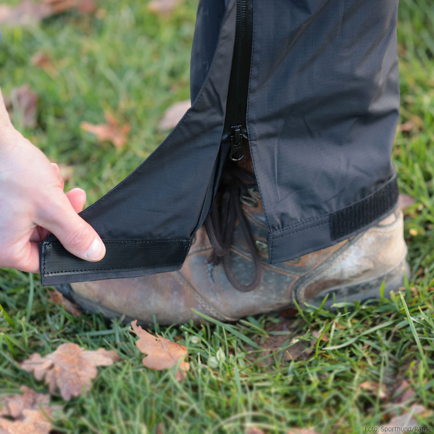 Ein durchgehender, wasserabweisender Seitenreißverschluss erleichtert das An- und Ausziehen und kann bei Bedarf komplett geöffnet werden, und der verstellbare Fußabschluss sorgt für einen sicheren Sitz und hält Wasser sowie Schmutz zuverlässig fern.