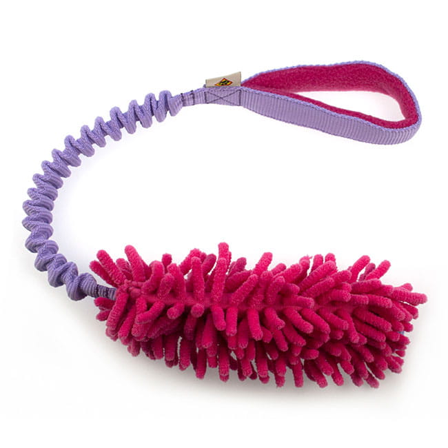 Der Wischmopp für den Hund! Bestätigungsspielzeug bestehend aus einem am Bungee-Seil befestigten Mopp in Gr. L. Durch die gepolsterte Handschlaufe ist es für den Hundeführer während des Zerrspiels angenehm zu halten. Das sich ausdehnende Bungee-Seil schont sowohl den Nacken des Hundes als auch die Schulter des Hundeführers.