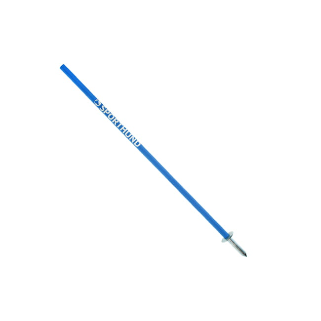 Leitstab von der Marke Sporthund in der Farbe blau mit Erdnagel und Eintritt-Hilfe ausgestattet. Der kunststoffummantelte hohle Metallstab ist leicht elastisch, aber dennoch sehr stabil.