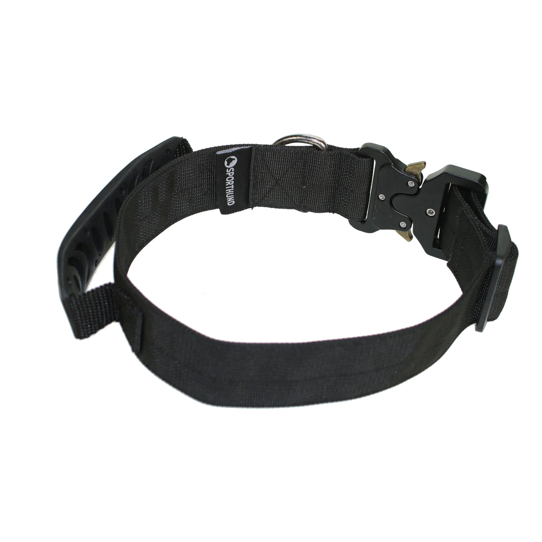 Das Sporthund Nylonhalsband Snap ist die ideale Kombination aus Alltagstauglichkeit und Kontrolle im Training. Das strapazierfähige Nylonmaterial, der stabile Metallschnappverschluss und der extragroße D-Ring sorgen für sicheres Führen und schnelles An- und Ablegen des Halsbandes.?Dank des integrierten Handgriffs kannst du deinen Hund auch ohne Leine jederzeit kurz festhalten – perfekt für Situationen im Alltag, auf dem Hundeplatz oder in der Stadt. Mit 38 mm Breite sowie den verstellbaren Größen S/M und L/XL passt sich das Halsband komfortabel an den Hals deines Hundes an und bietet einen sicheren Sitz.