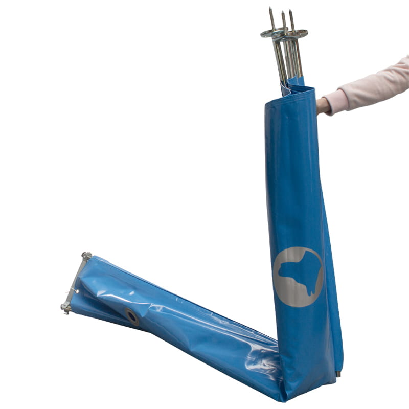 Das hochwertig verarbeitete Versteck ist gefertigt aus robuster LKW-Plane, die auf einem stabilen, gesteckten Metallgestänge verspannt ist. Sehr praktisch sind die zwei eingearbeiteten „Spione“, durch die der Helfer den Hund beobachten kann. Unser leichtes, aber dennoch stabiles Versteck, ist in zwei Teile auf halbe Höhe zerlegbar. Das macht den Transport wesentlich komfortabler. Am Hundeplatz angekommen, ist es aufgrund der Steckverbindung des Gestänges schnell wieder aufgebaut und das Training kann beginnen.