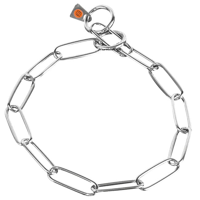 Eine robuste Halskette aus rostfreiem Edelstahl, die sich besonders gut als Arbeits- und Alltagshalsband für Hunde eignet. Die längeren, glatten Glieder sorgen für eine hohe Stabilität bei gleichzeitig angenehmem Tragegefühl und schonen das Fell, da es weniger zu Haarbruch kommt. Durch das hochwertige Edelstahlmaterial ist die Kette korrosionsbeständig, pflegeleicht und behält auch bei intensiver Nutzung ihre ansprechende Optik.