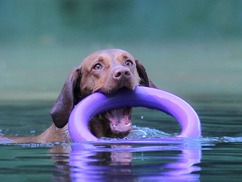 Pia Schmalzbauer: „Tolles Spielzeug, das ich schon vom Spielen an Land her kannte. Schwimmt ebenfalls perfekt und ist gut verarbeitet. Allerdings sollte man bei Nutzung als Wasserspielzeug darauf achten, ihn ein wenig kleiner zu bestellen, da die Hunde, wie auch mein Mika, schnell mit den Vorderläufen im Ring hängen bleiben.“