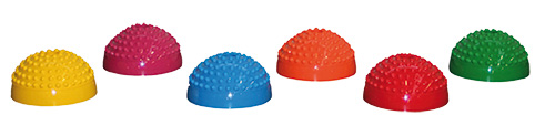 Ein Hingucker sind auch die bunten Igelchen oder Steine, die Gymnic Multiactive Stones. Das Set besteht aus sechs bunten Halbkugeln mit noppiger Oberfläche, welche die Nervenenden in den Pfoten stimuliert und so die Reizweiterleitung verbessert. Die Steine haften gut auf glatten Oberflächen. Sie können mit Sand oder Wasser befüllt werden. Übungen mit den Igeln sind nicht für Anfänger geeignet, da sie dem Hund viel Ruhe und Geschick abfordern. Jedoch lohnt es sich, darauf hinzu- arbeiten, weil sie das Körperbewusstsein des Hundes ungemein schulen. Koordination, Beweglichkeit und Stabilität werden verstärkt. Praktischer Nebeneffekt: Die Arbeit mit den Steinen schult die Konzentration, was dem Hund auch im Sport zugutekommt.