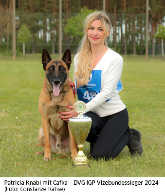 ![]() Patricia Knabl ist Juristin, führt ihren ersten Sporthund im IGP. Zusammen mit Ehemann Florian und weiteren Unterstützern hat sie „K9andSports“ gegründet. Weitere Informationen über Patricia Knabl auf der Homepage unter https://k9-and-sports.com. |